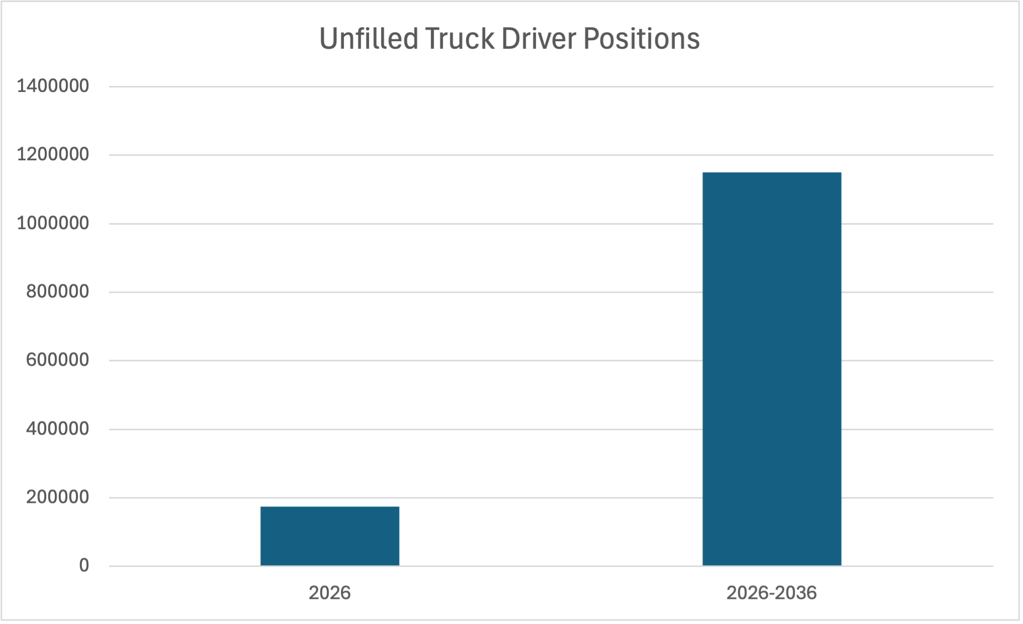 However, if capacity contracts by 5% to 8%, freight rates are likely to face upward pressure, particularly during peak moving seasons, which may be a positive development in an industry that has been plagued by downward price pressures. For household goods movers, this may translate into higher consumer prices for interstate relocations. However, driver recruitment and training costs are expected to rise from an average range of $7,000 to $20,000 per driver, as firms compete for a smaller eligible labor pool. Truck Driver USA estimates that industry productivity shortfalls in 2025, due to labor scarcity and increased recruitment costs, amounted to $95 million per week. While AI efficiencies may partially offset these pressures, implementation lags and capital expenditures will create transitional friction.
